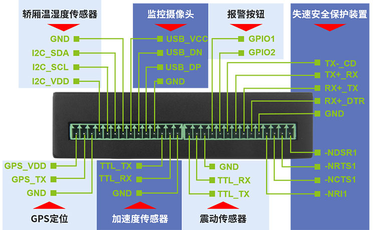 在整套电梯物联网管理方案中,将GPS定位传感器、轿厢温度传感器、加速度传感器、报警装置接入JDB电子R100;利用R100的边缘计算能力,对采集到的数据进行运算和整形,迅速识别并响应异常运行状态;最终通过无限局域网络或蜂窝数据网络上发至管理平台,完成电梯的物联网接入。