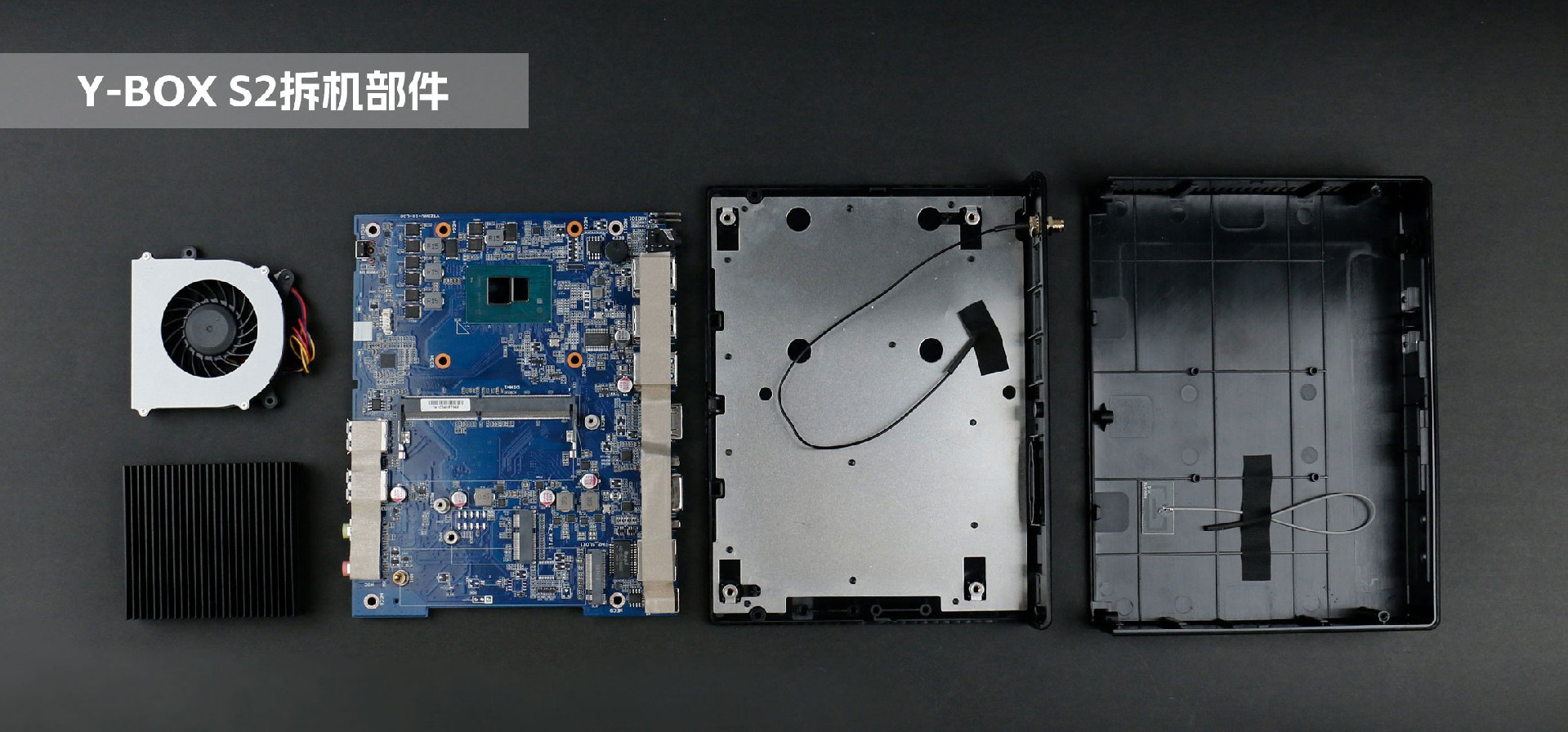 JDB电子桌面云终端Y-BOX S2机壳由两片式塑胶壳组合而成,整机由上至下主要分为三个部分:顶部外壳、内部主板、底部外壳。底部外壳内附一层铝板防静电,以防主板被静电损坏。主板处理器顶部安装一体式铝板鳍片,并涂抹一层散热膏用于导热,提高散热强度。同时,主板中部安装强劲的风扇用于散热,降低内存与硬盘读取时受温度的影响,提高运行稳定性。