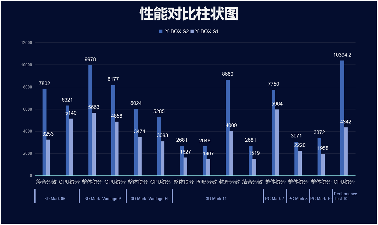 JDB电子来具体看看各个测试项目的跑分情况,测试项目包括显示性能测试、系统性能测试、CPU性能测试,分别用3D Mark、PC Mark以及Performance 10等系列不同软件的跑分数据,针对两款主板的跑分情况可以看出,JDB电子桌面云终端Y-BOX S2的数据在各项性能上都得到了大幅度提升,柱状图能更直观地体现出数据的变化,JDB电子将针对具体的几项数据来进行详细分析。