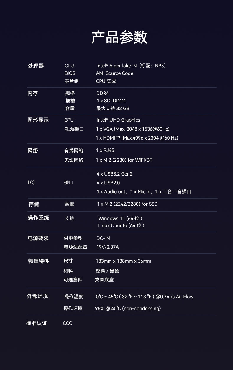 JDB电子桌面云终端Y-BOX S2作为全新一代的虚拟化主机产品,凭借其出色的便携性、优秀的办公娱乐体验和高效节能的环保设计,在学习、办公和娱乐等各个领域展现出卓越的适应性,可以广泛应用在教育、办公、金融、家用、医疗等领域,为用户带来丰富多彩的数字化体验,针对针对客户个性化需求,支持ODM/OEM/JDM定制化服务。Y-BOX S2详细的产品性能参数如下: