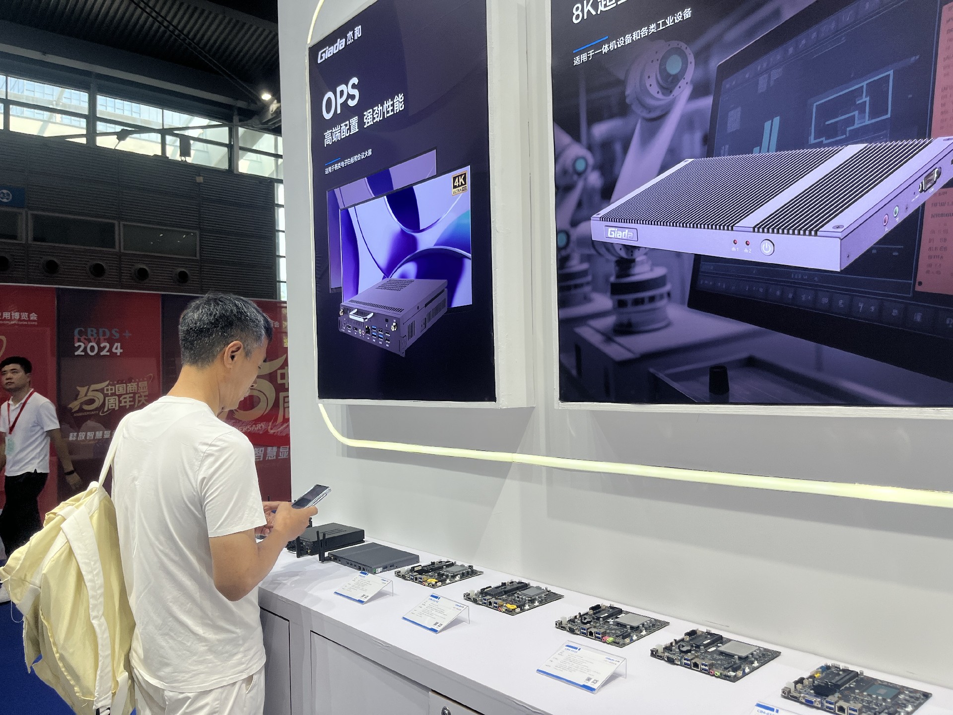 JDB电子科技展位放置在c位的明星产品和最新产品吸引了众多参观者的目光。展台下方整齐排列着公司的产品,包括主板、嵌入式整机、OPS等,这些产品不仅适用于商业展示领域,还广泛应用于工业、制造业和教育业等多个行业。