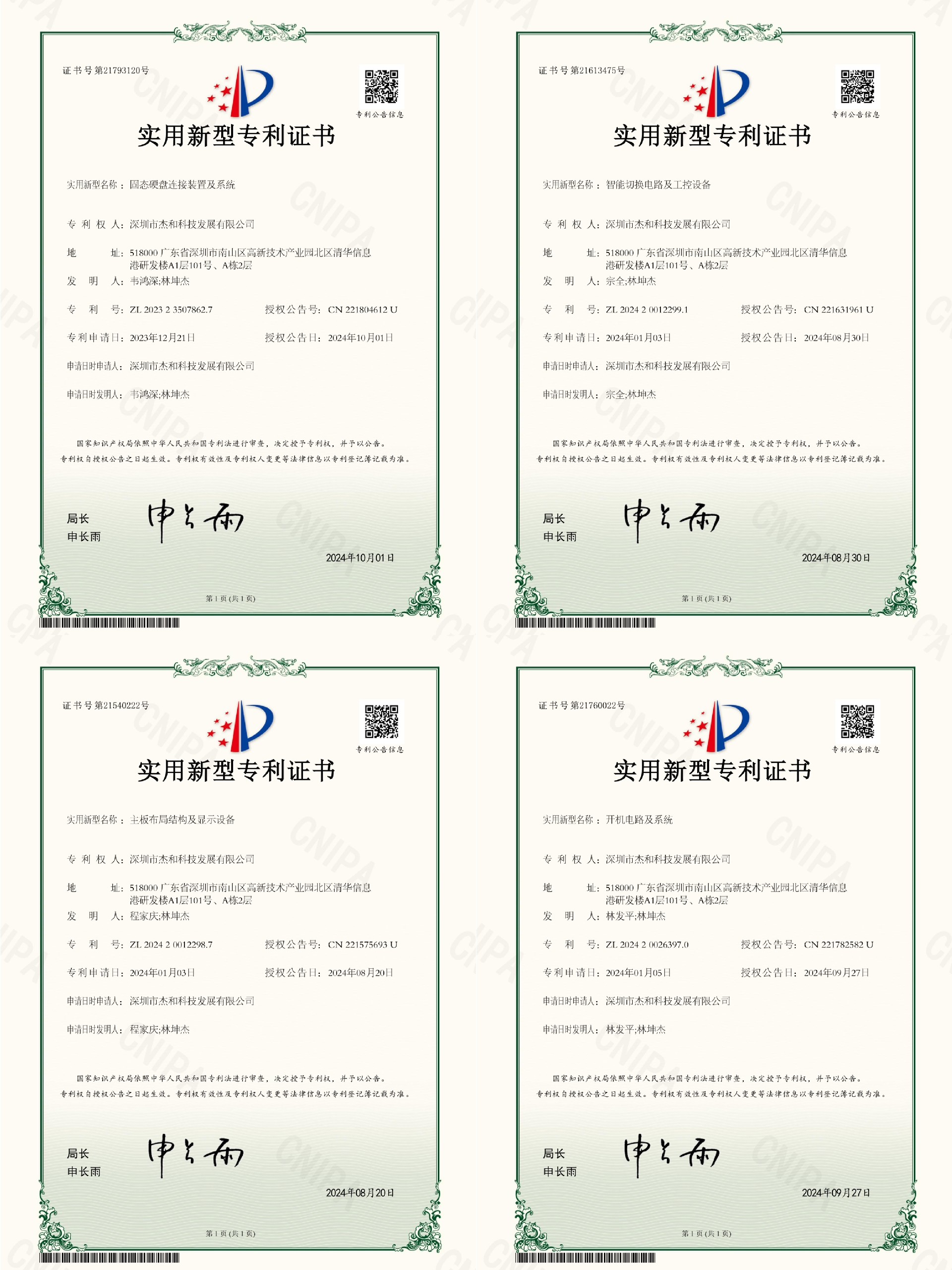 在科技创新的道路上,JDB电子科技从未停止前进的脚步。截至2024年10月,JDB电子科技今年在科研上取得了显著成就。今年JDB电子共荣获10项实用新型专利,2项外观设计专利,取得4项软件著作权,还有5项发明公开待授权。