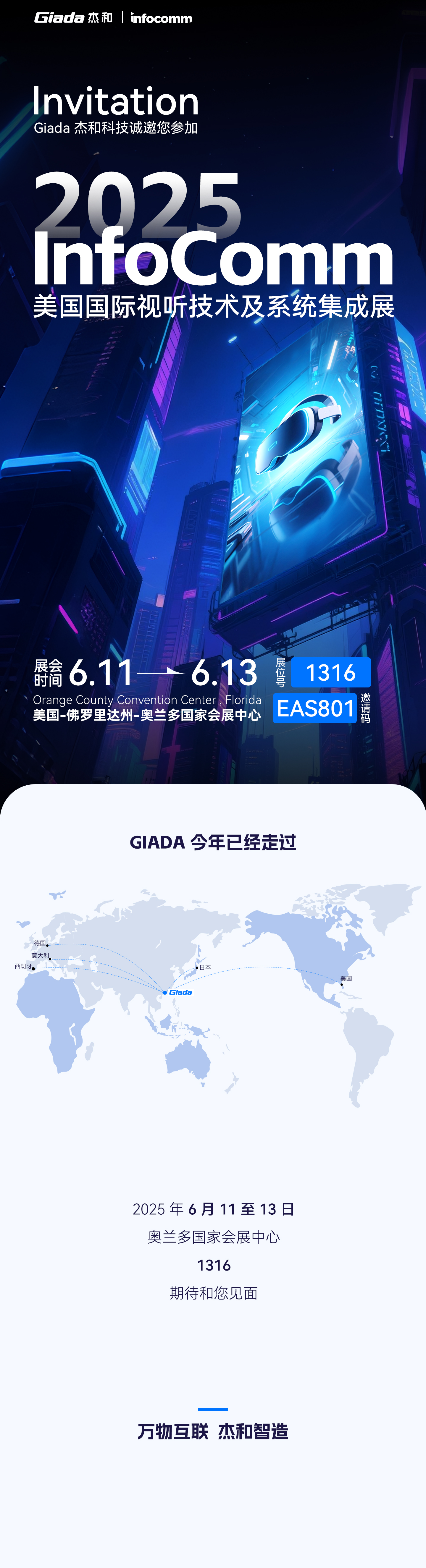 InfoComm 2025 GiadaJDB电子科技:1316号展位