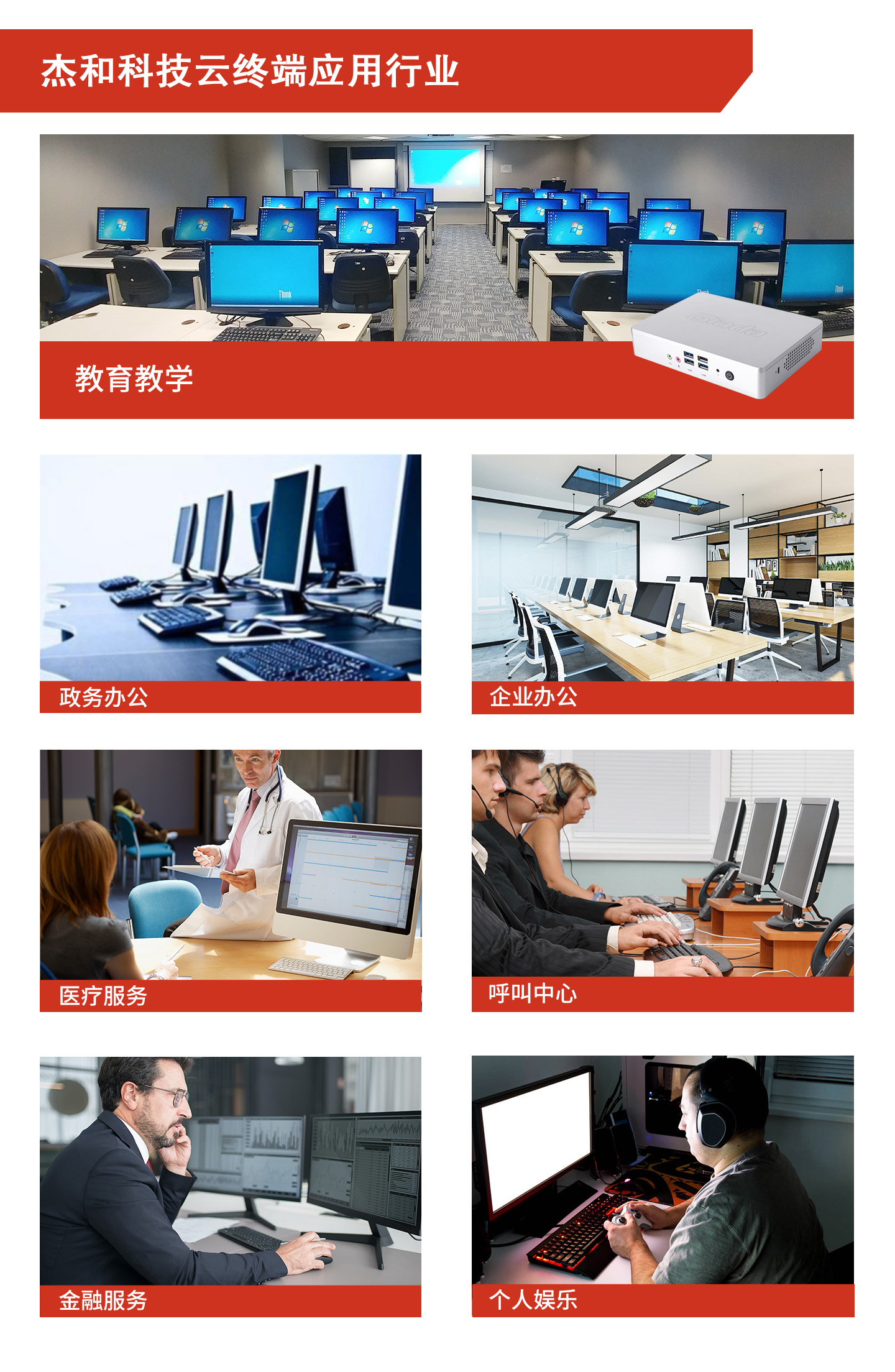 JDB电子科技一直致力于为所有合作伙伴提供更高效、更便捷、更安全可靠的数智化产品。JDB电子也早在成立初期,就锁定云终端客户机市场,并持续进行优化,如今JDB电子的产品已遍布各行各业!