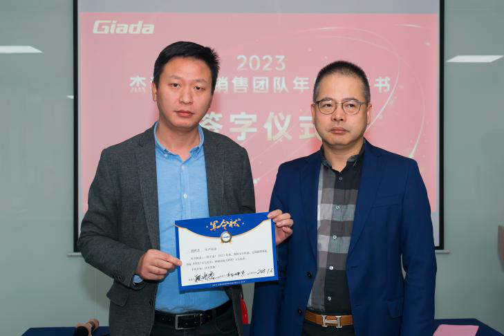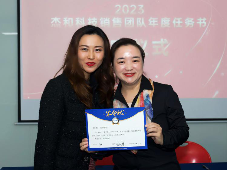 签约仪式上,一张张销售 “军令状”是确保完成2023年JDB电子销售战略的基石,同时是吹响再出发的冲锋号。各销售人员手捧责任状,虽知千斤担,但都敢于亮剑,勇攀高峰,责任状上一个个响亮的数字串就成JDB电子的星光大道 。