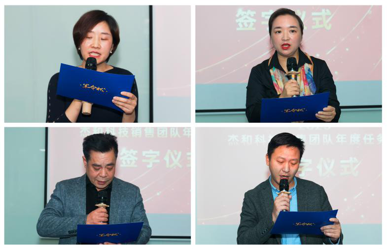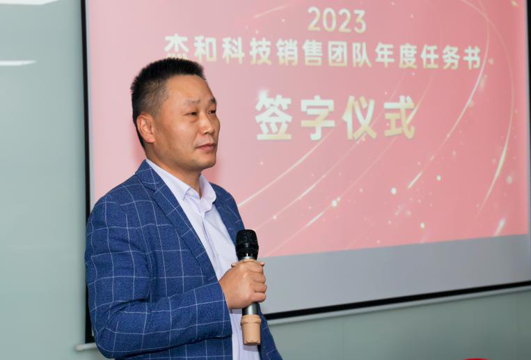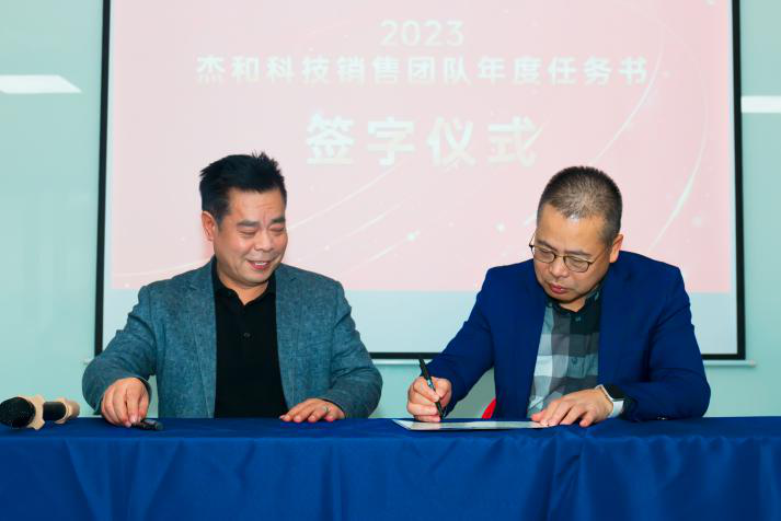 签约仪式中,国际营销中心业务代表刘正文和国内营销中心业务代表李喆发言,两位代表朴实的发言表示,销售人员必须要努力和坚持,要有愚公移山的精神才能成就了2022年的可喜成绩,同时完成2023年度目标必须怀着奋斗者的精神去努力拼搏,2023年JDB电子业务会冲到前线,紧贴市场,紧贴客户,抢夺订单。