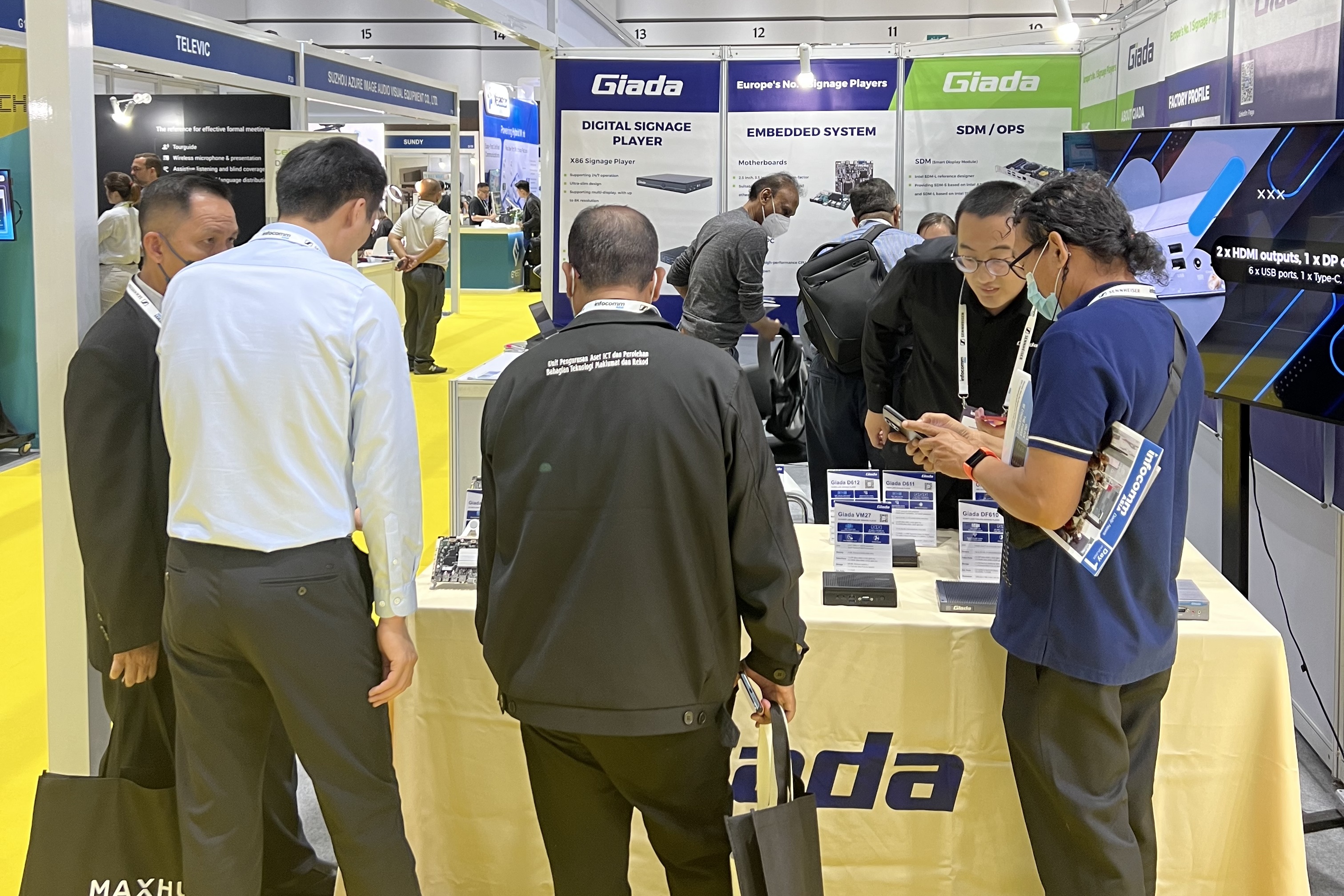 此次InfoCommAsia 2023展会,GiadaJDB电子科技携最新产品及方案亮相。致力于为全球企业客户解决智能化应用需求的JDB电子,此次展会带来了数字标牌播放器、边缘计算机、OPS/SDM和嵌入式主板等的最新产品,并展示了一系列量身定制的解决方案,以满足泰国市场的具体需求,为亚太地区的数字化转型带来全新势能。展会期间,Giada的展台现场气氛火爆,展位人流络绎不绝!