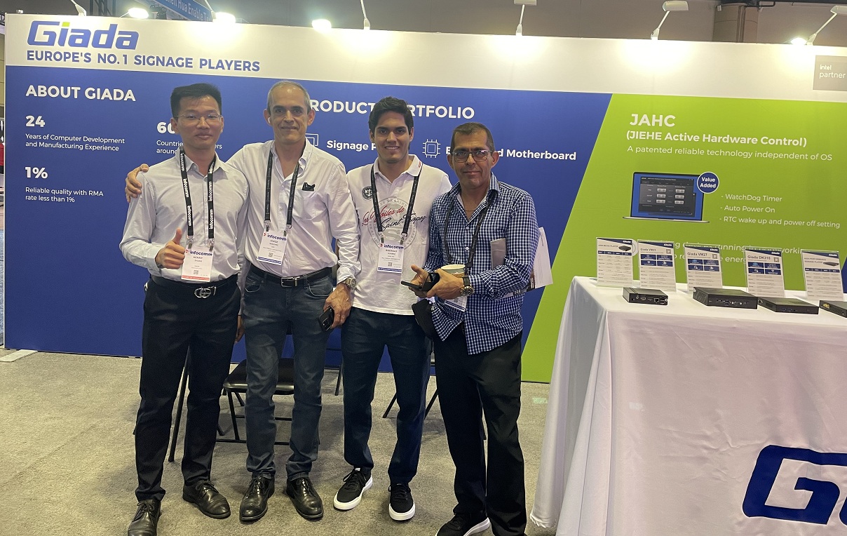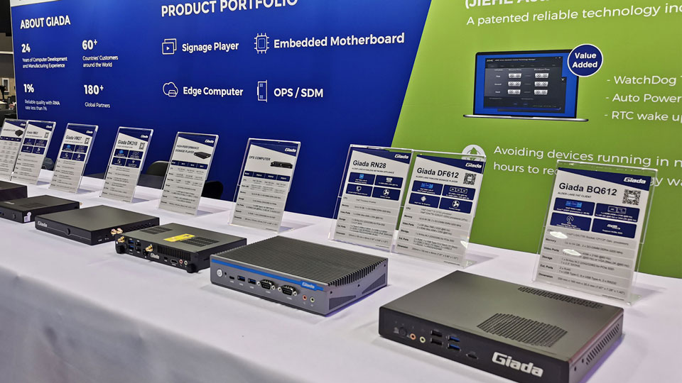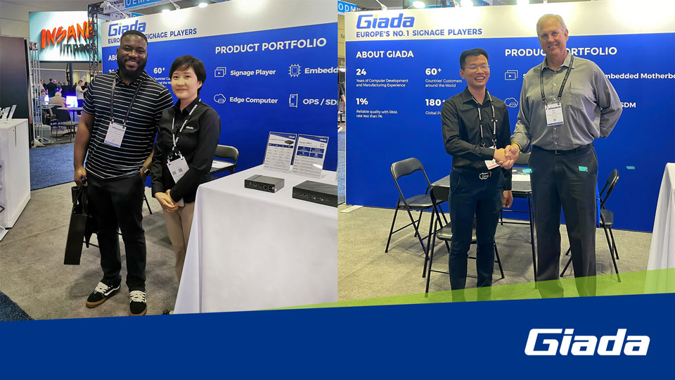 展会上GiadaJDB电子科技携最新的数字标牌和信息亭应用解决方案以及最新尖端产品惊艳亮相!其中最新的数字标牌播放器、边缘计算机和OPS(开放式可插拔规范)产品在现场备受关注,标志着GiadaJDB电子科技互动显示器和智能标牌解决方案领域的重大进步,也向全球参展观众集中展现了公司的非凡实力。