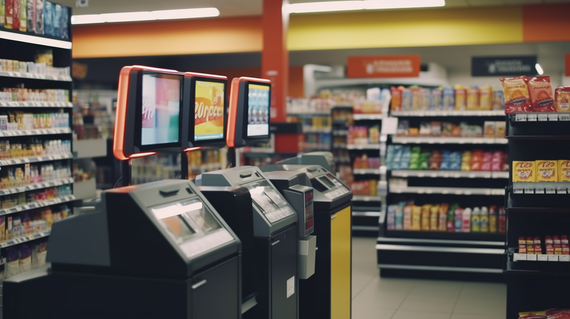 用于零售商店,帮助顾客自己扫描商品和结账。