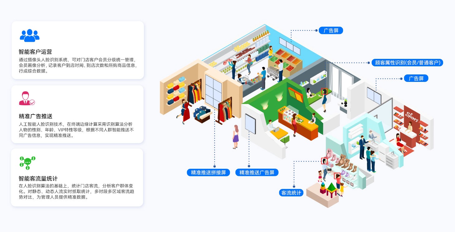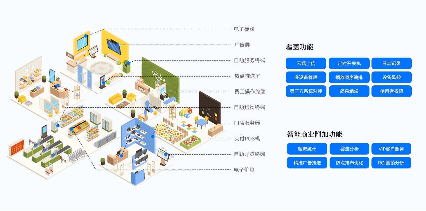 JDB电子智慧零售解决方案依托JDB电子GDSM-ES智能零售管理系统,为全球零售门店客户提供了功能齐全的数字化运营管理工具,提供显示信息编辑、信息发布、AI识别、客户分析和会员管理等功能,实现了对设备、内容、营销、运营的综合数智化管理能力,为精准运营管理赋能。