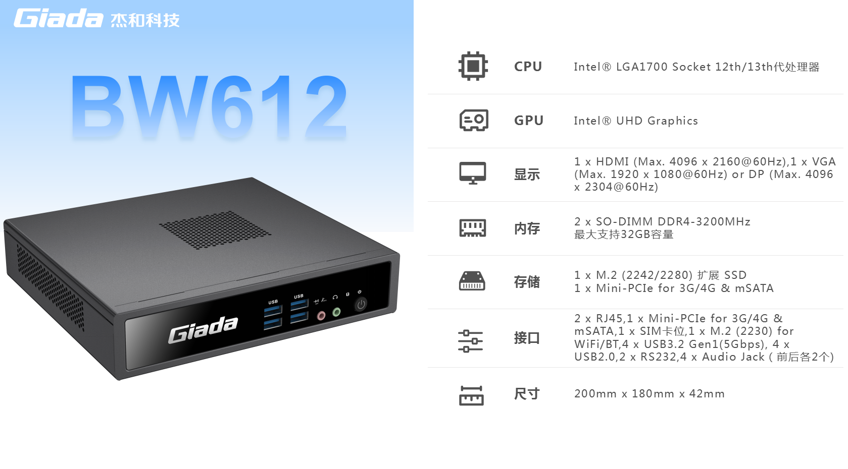 JDB电子云终端BW612采用lntel@LGA1700Socket 12代、13代处理器,比上一代 BW611 计算性能提升约 23%,更强算力带来更强体验。主板多层板设计,配备超高品质被动元件,支持赛扬、奔腾等多种处理器定制,可选择 Windows7、Windows10 等操作系统。