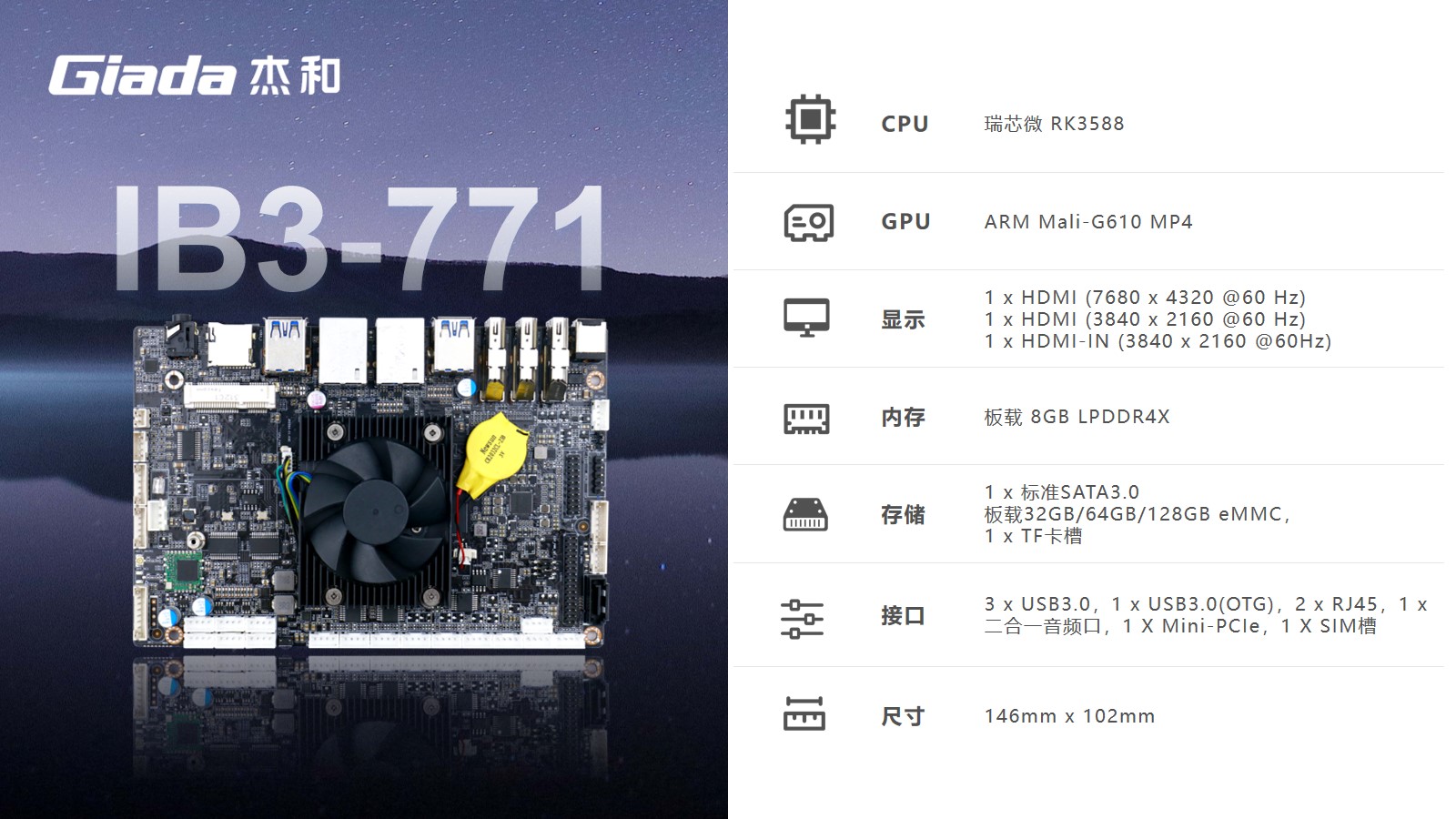 JDB电子科技嵌入式主板IB3-771是8K人工智能主板,拥有轻算力的它可用于机器人、边缘计算、智能NVR、智能汽车、智慧大屏、AR/VR、ARM PC、智能自助终端等领域,还可用于监控、工业、餐饮、智能交通、文娱产业等对超高清视频需求旺盛的行业;