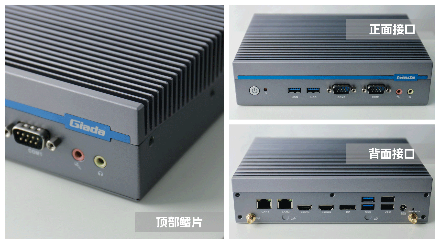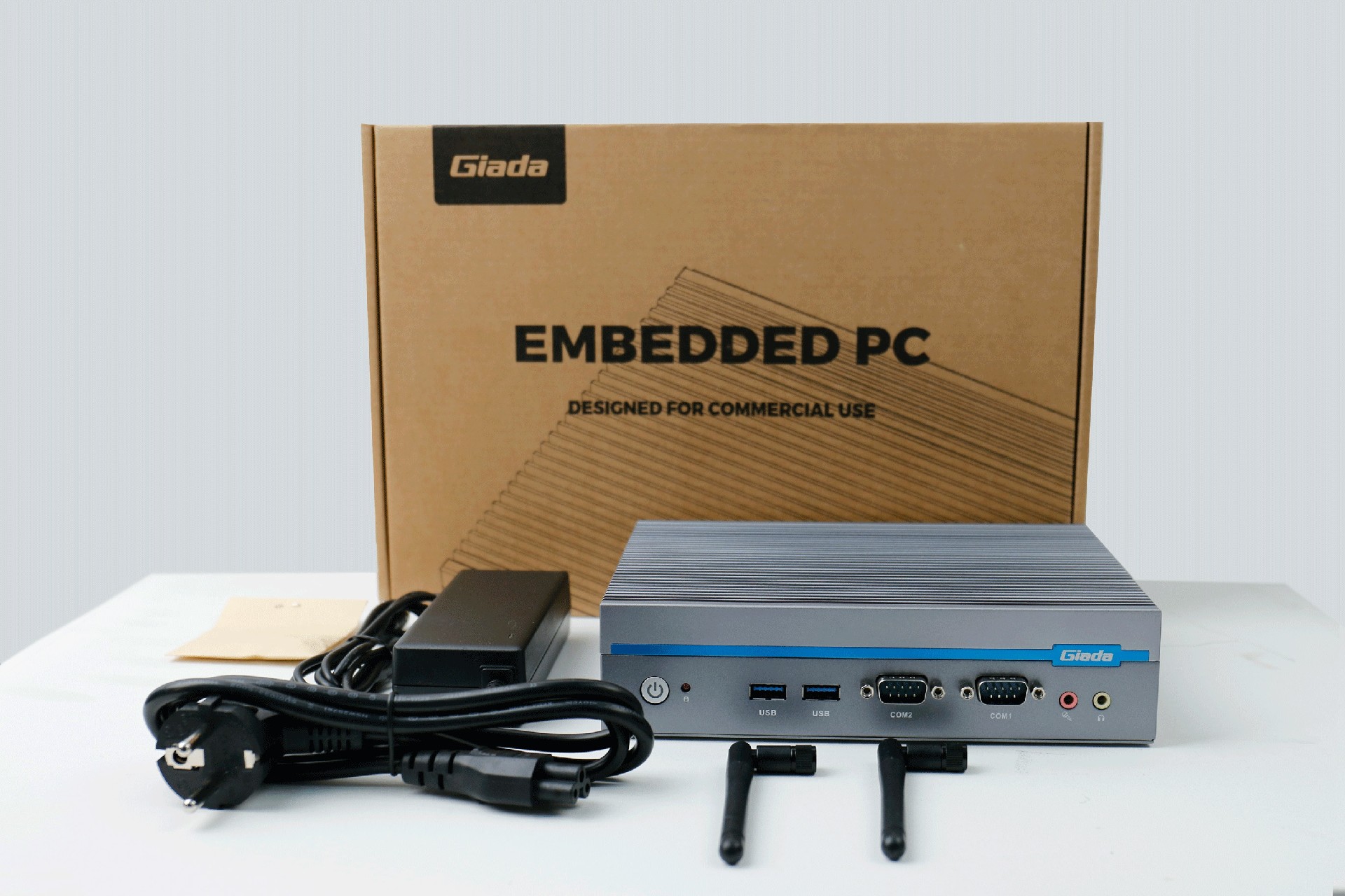 嵌入式整机AE613外包装采用环保材料设计,内部配备适配器、AC线、天线棒、螺丝包,满足通用需求,整机外观机壳顶面采用一体式铝板增高的鳍片散热设计,整机结构采用全铝设计保证散热与抗压性,通过JDB电子特有无风扇静音散热设计使整体散热效果非常优秀,同时营造出极致安静的工作和使用环境,无噪音,更防尘。