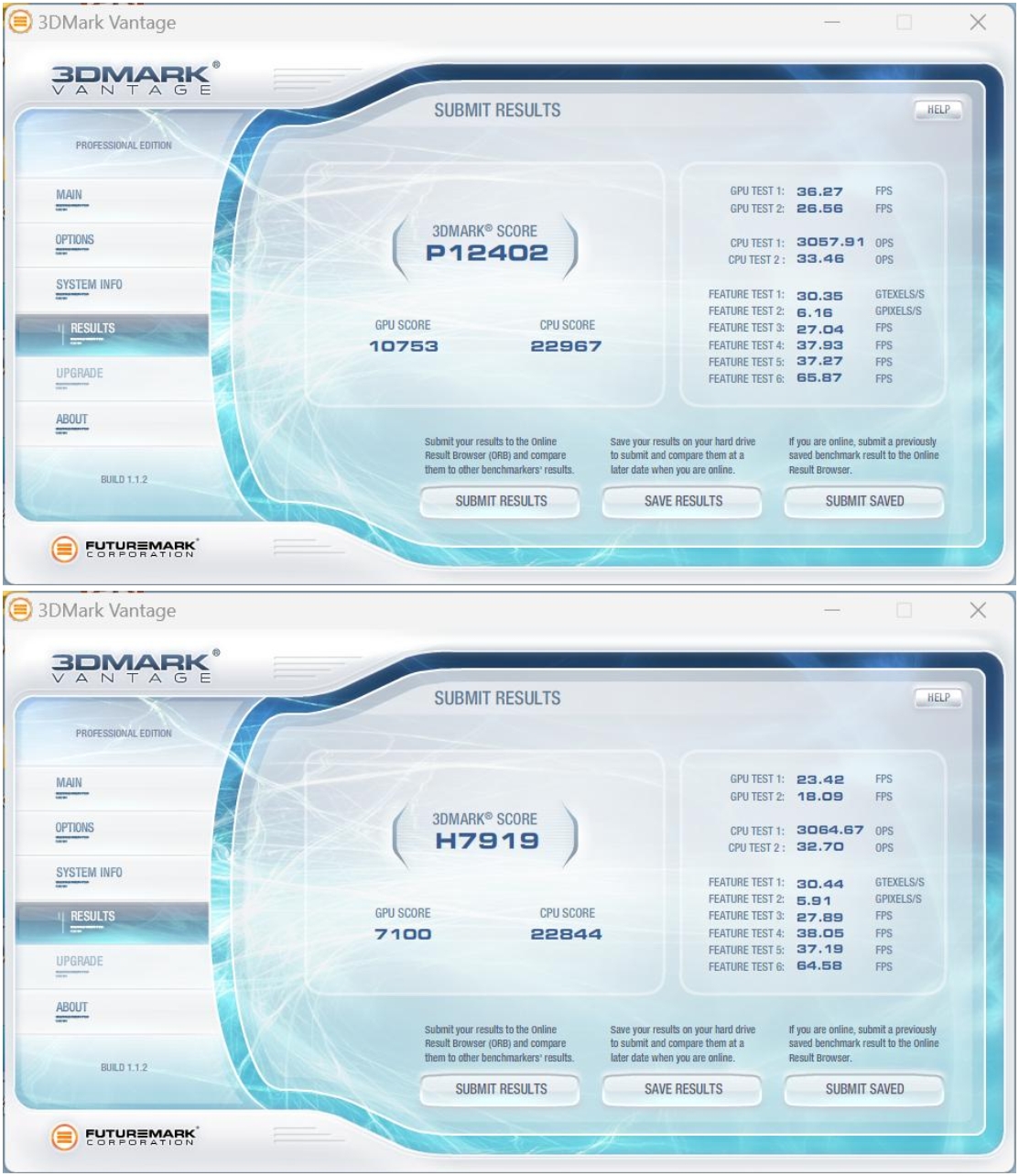3DMark Vantage一款3D图形性能评测软件,主要用于评测电脑的显卡和处理器的性能。JDB电子按照画质等级,记录了性能级(Performance,P)和高端级(High,H)两份数据。其中,Performance的综合得分为P12402,High的综合得分为H7919,表现不错,这个成绩已经完全能够满足主流用户的需求了。
