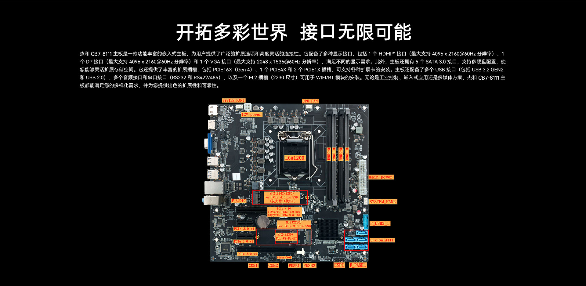 1 x HDMI +1 x LVDS+1 x VGA,支持4K视频输出